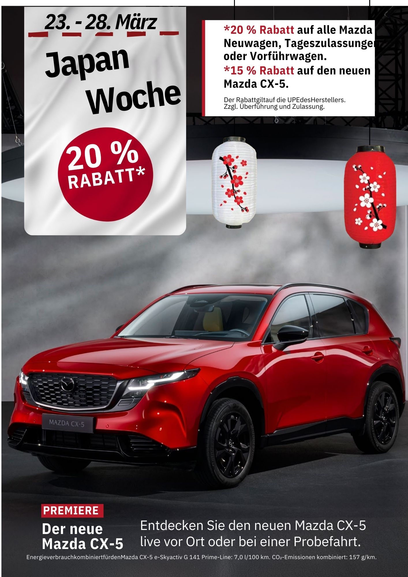 Im Rahmen unserer Japanwochen vom 23. bis 28. März erwarten Sie attraktive Angebote rund um Mazda.